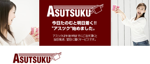 アスツクは午後1時までにご注文頂くと、当日発送、翌日に届くサービスです。